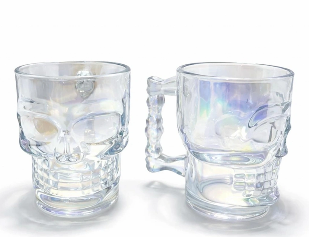 Bidebuvar 2'li Şeffaf Cam Kurukafa Kupa Bardak Seti
