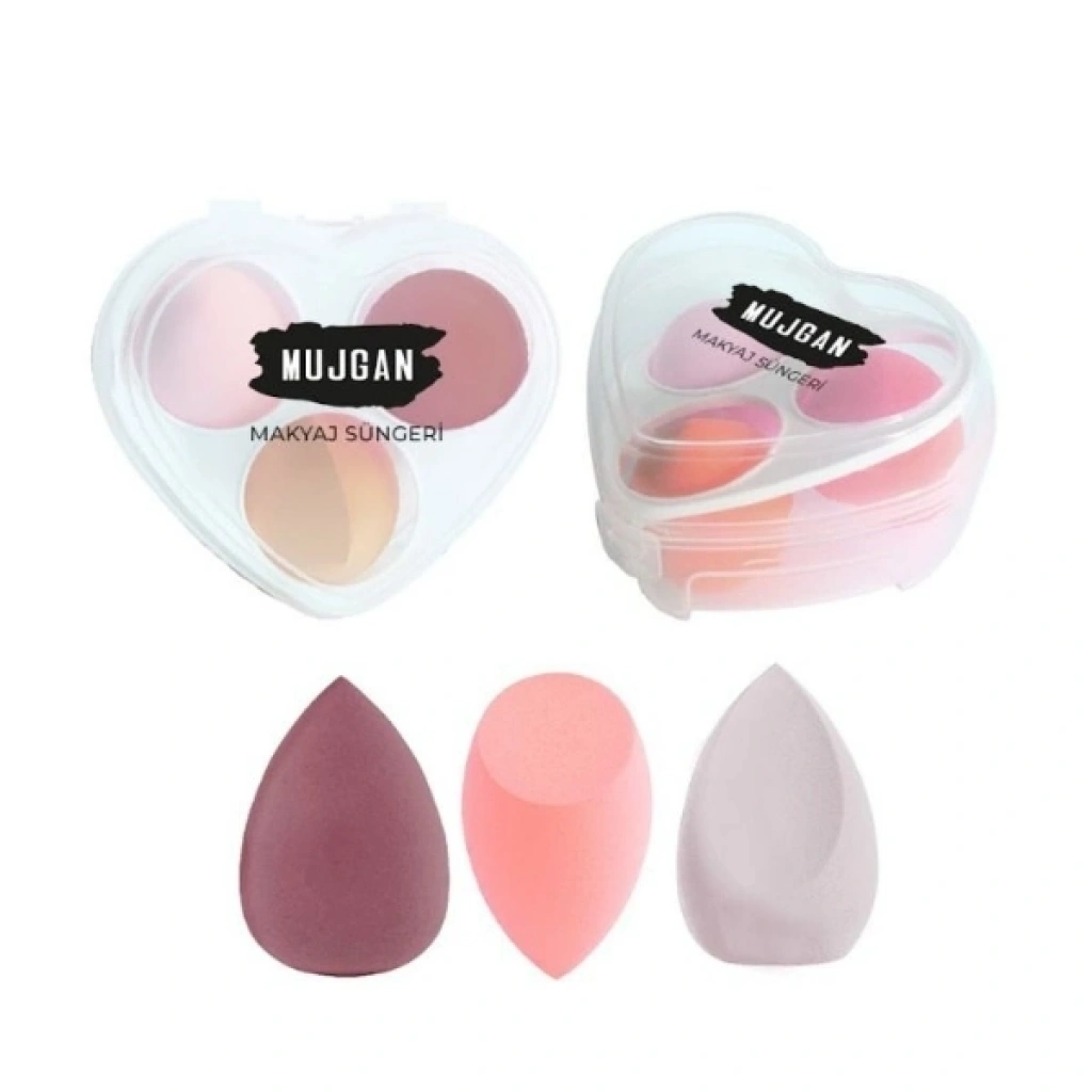 Bidebuvar 3'lü Makyaj Süngeri Seti Kalpli Kutu
