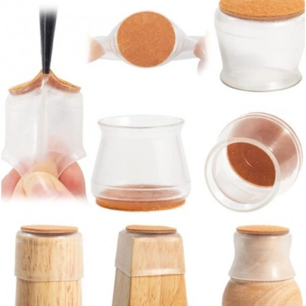 Bidebuvar 4'lü Keçeli Şeffaf Silikon Sandalye Ayak Koruyucu Seti