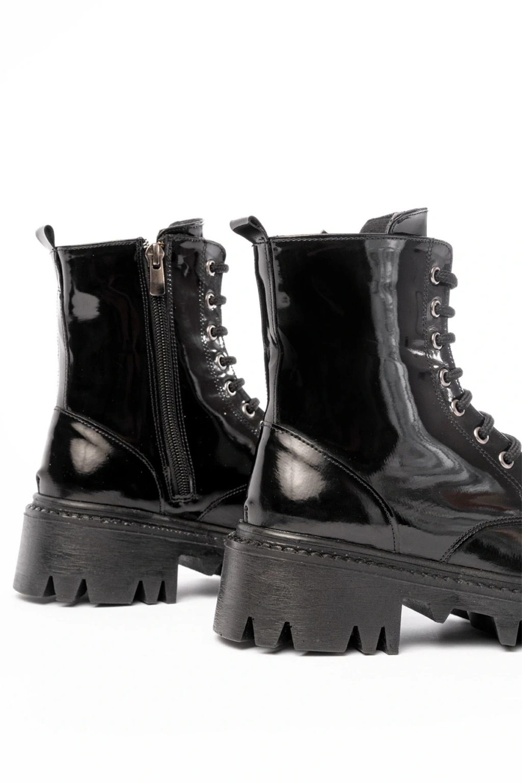 Bidebuvar 868-356 Siyah Rugan Bağcıklı Fermuarlı Günlük Kadın Bot