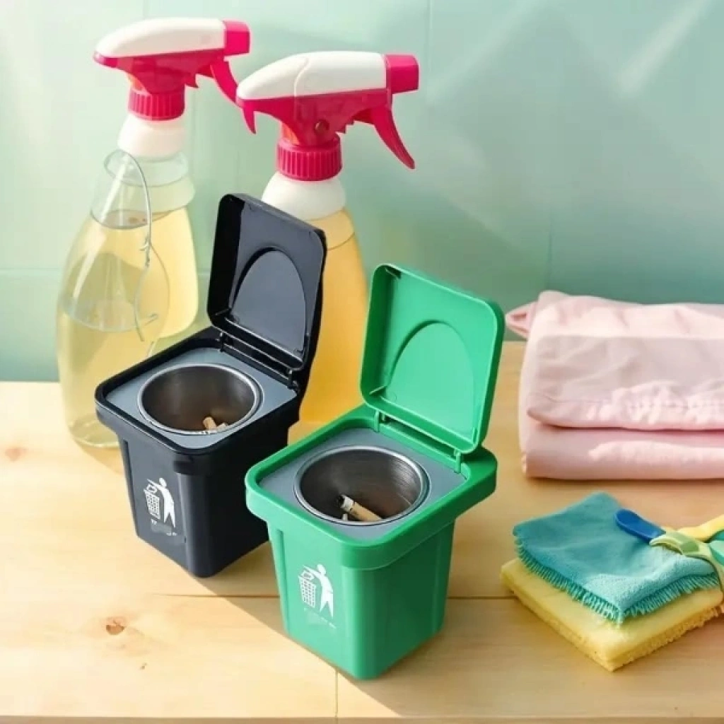 ÇÖP KUTUSU TASARIMLI DUVAR KÜLLÜĞÜ Ürün ÖzellikleriSıradan küllük tasarımlarını unutun! Çöp Kutusu Tasarımlı Duvar Küllüğü, eğlenceli minyatür çöp kutusu formuyla hem mekanınıza dekoratif bir hava katar hem de kullanım kolaylığı sağlar. Duvara monte edilebilir yapısı sayesinde balkon, teras, banyo veya ofis gibi alanlarda yer kaplamadan pratik bir kullanım sunar. İç kısmında yer alan çıkartılabilir paslanmaz metal hazne, temizlik işlemini saniyeler içinde halletmenizi sağlar ve koku oluşumunu minimize eder. Kapaklı tasarımı sayesinde rüzgardan etkilenmez ve küllerin çevreye dağılmasını engeller. Dayanıklı plastik gövdesi ve şık duruşuyla görseldeki siyah veya yeşil renk seçeneklerinden biri karışık gönderilir. Güçlü yapışkanlı montaj aparatı ile yüzeye zarar vermeden kolayca sabitlenebilir.Ürün Teknik ÖzellikleriÖzellikAçıklamaTasarımMinyatür Çöp Kutusu FormuMontaj TipiDuvara Monte (Yapışkanlı Aparat Dahil)MalzemeKaliteli Plastik Gövde & Paslanmaz Metal İç HazneKapak SistemiKoku ve Kül Dağılımını Engelleyen Kapaklı YapıRenk SeçenekleriSiyah veya Yeşil (Karışık gönderilir)Kullanım AlanıBalkon, Ofis, Banyo, Kafe ve RestoranlarPaket İçeriği1 Adet Çöp Kutusu Tasarımlı Duvar Küllüğü