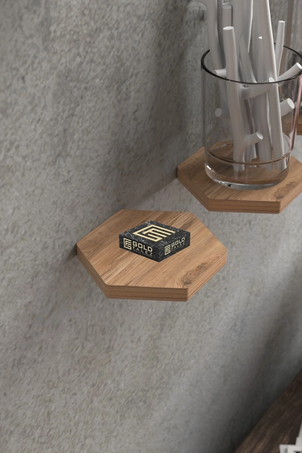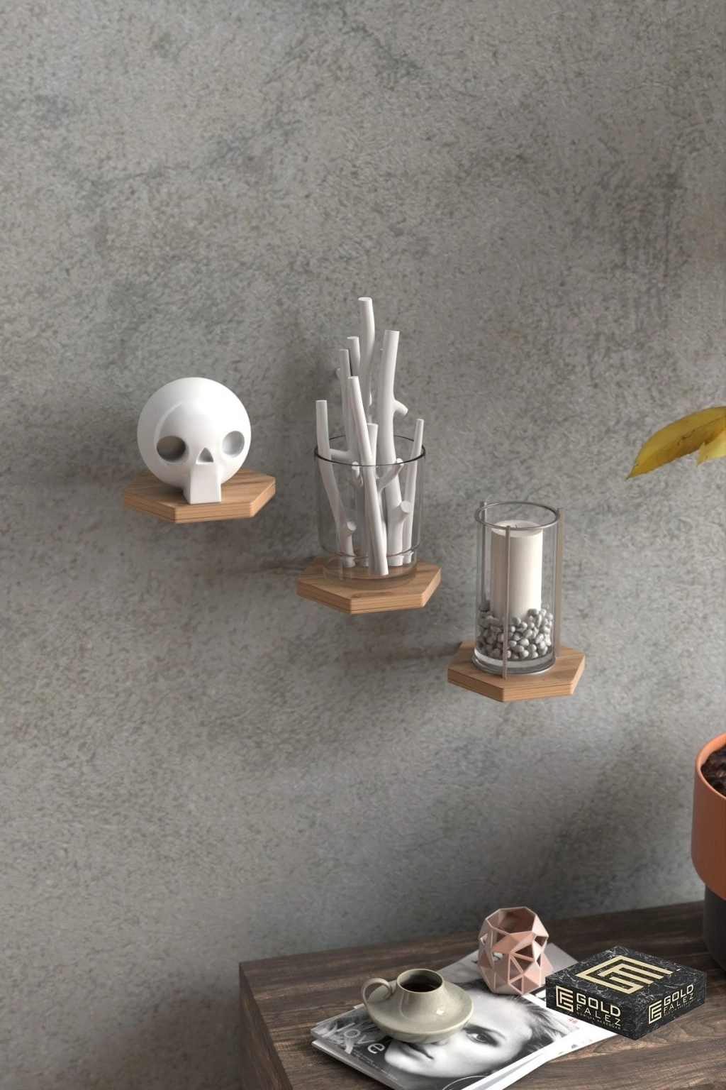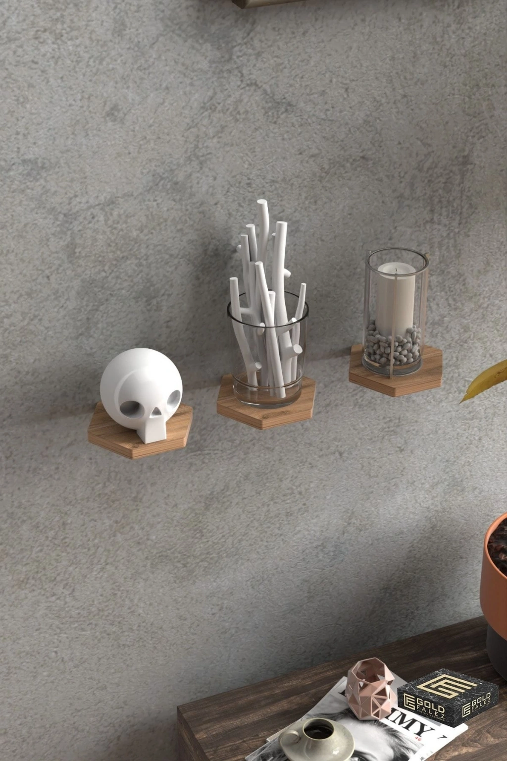 Bidebuvar Duvar Rafı Dekoratif 3 Adet Çiçeklik Altıgen Ceviz