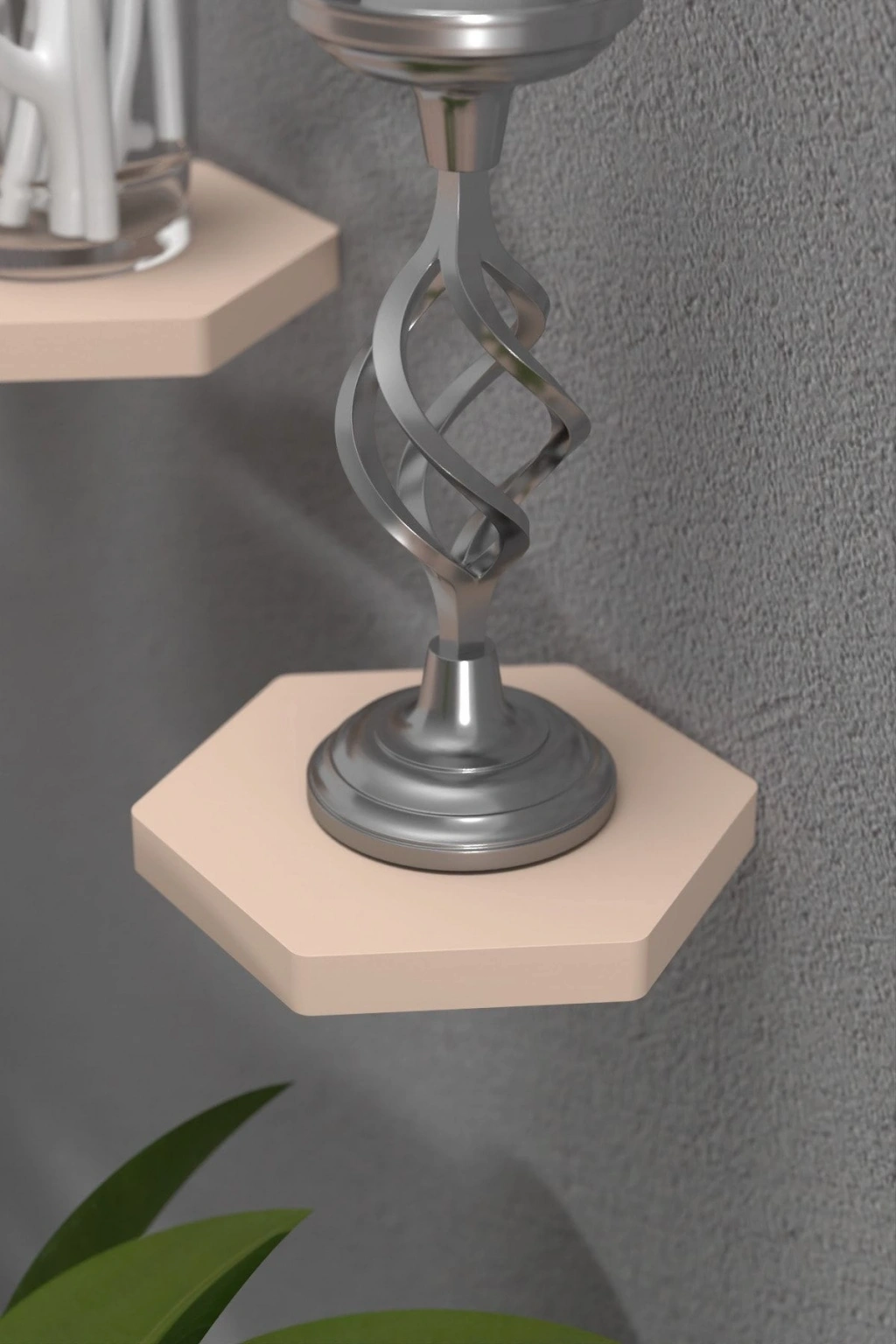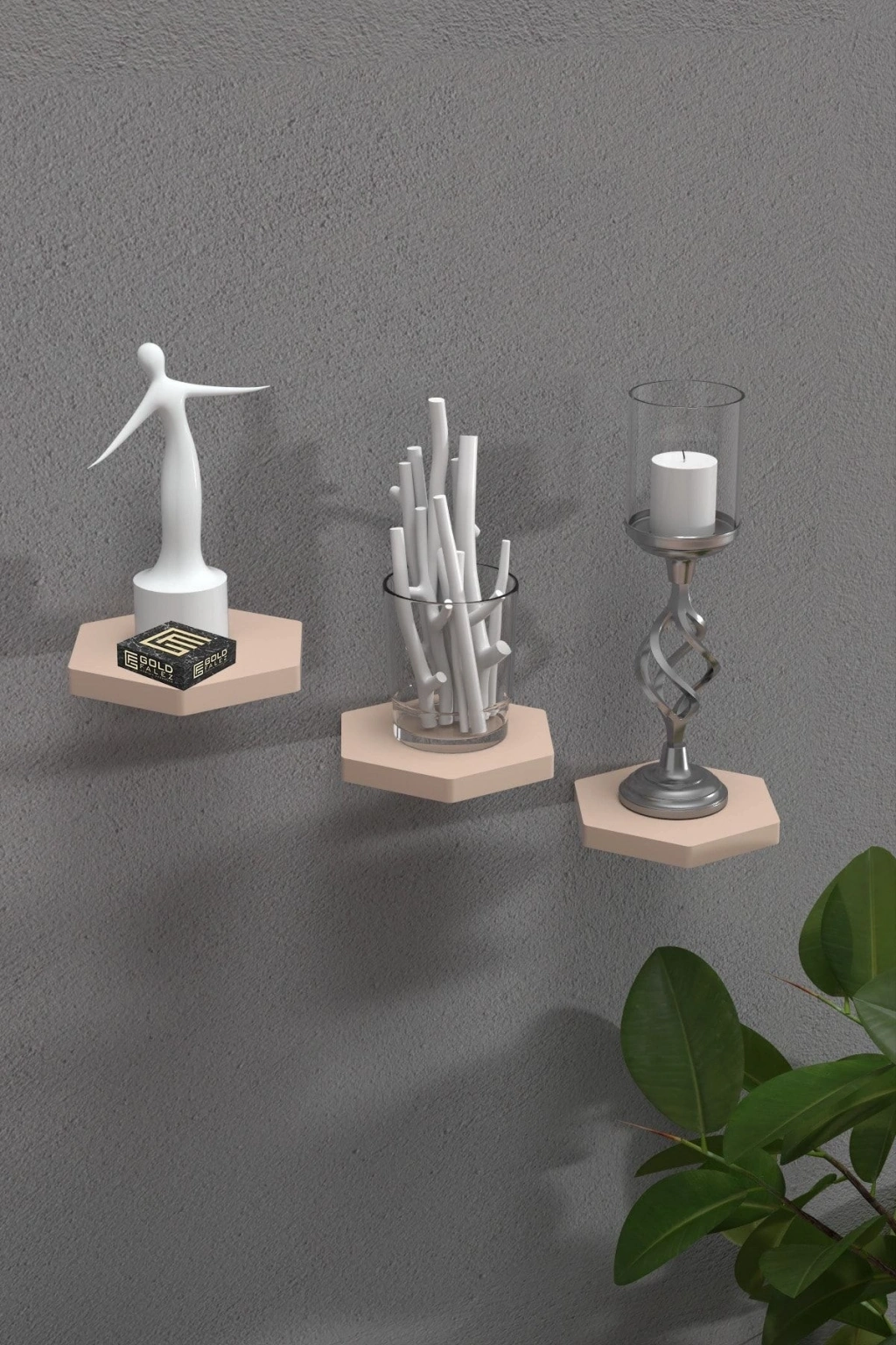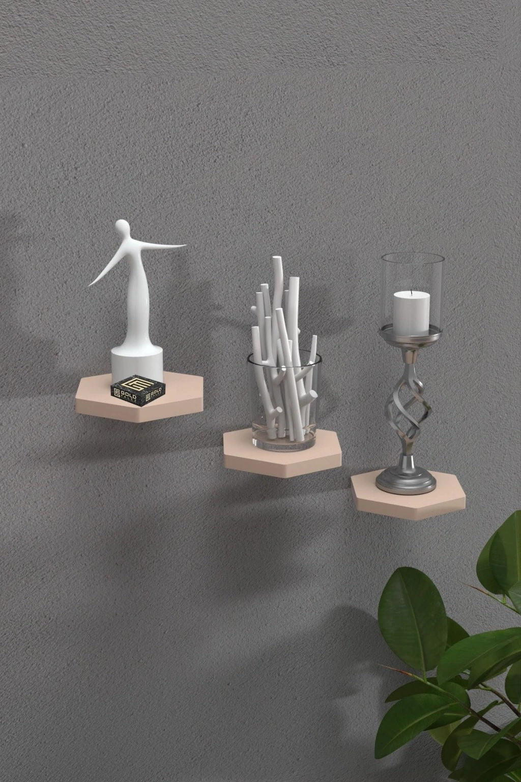 Bidebuvar Duvar Rafı Dekoratif 3 Adet Çiçeklik Altıgen Krem