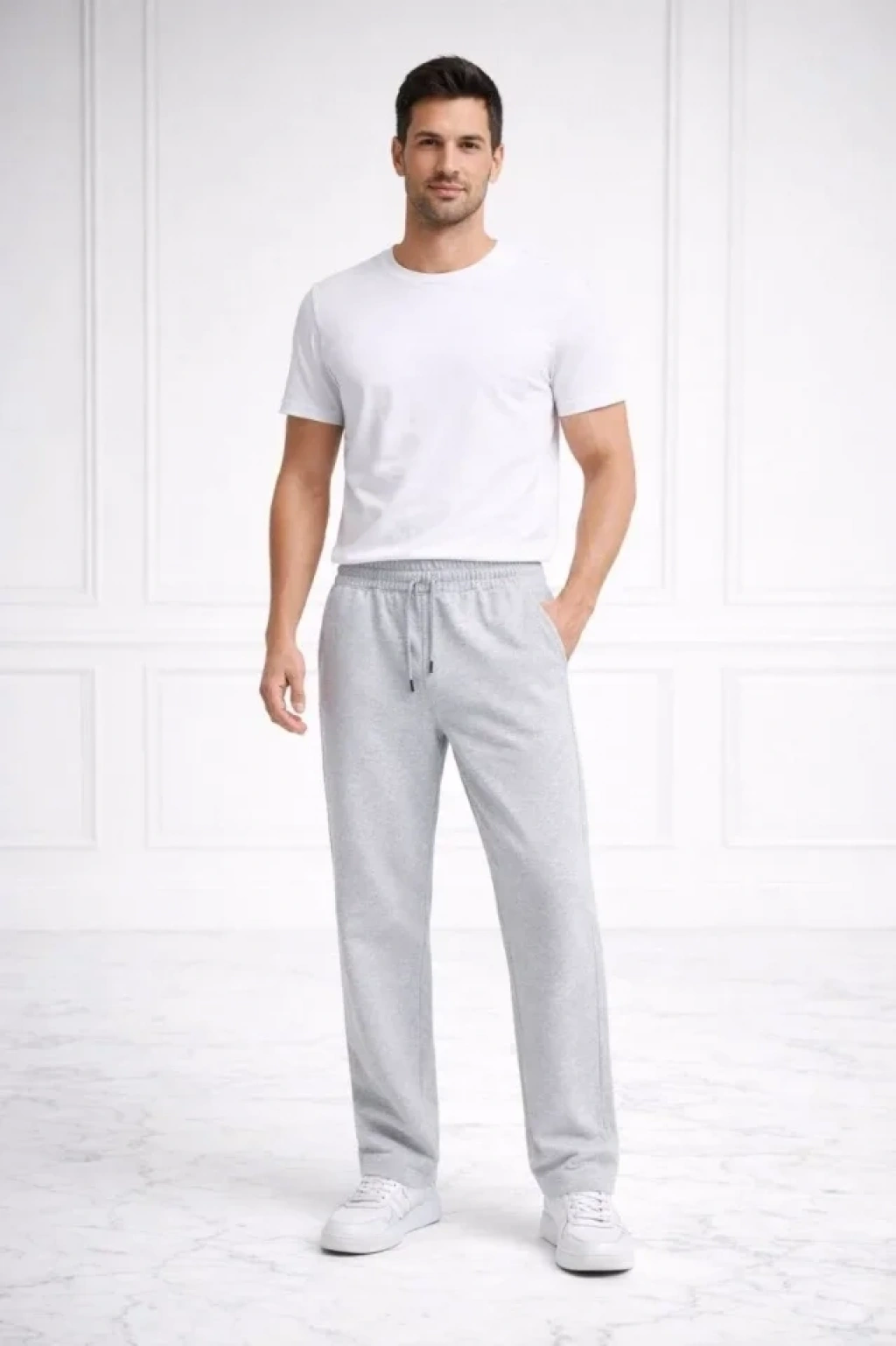 Erkek Düz Paça Beli Lastikli İpli Günlük Spor Eşofman Altı Rahat Fit - Gri