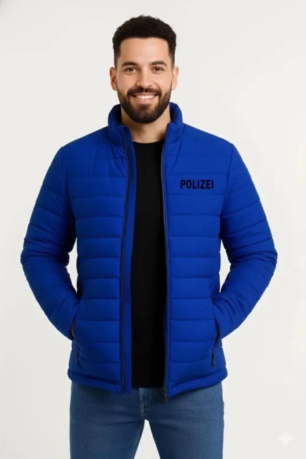 Erkek Mikro Su İtici Kapitone Baskılı Astarlı Fermuarlı Bomber Mont - Saks Mavisi