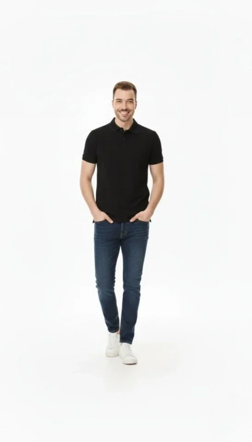 Erkek Pike Kumaş Düğmeli Yaka Regular Fit Günlük Kısa Kol Tişört T-shirt - Siyah