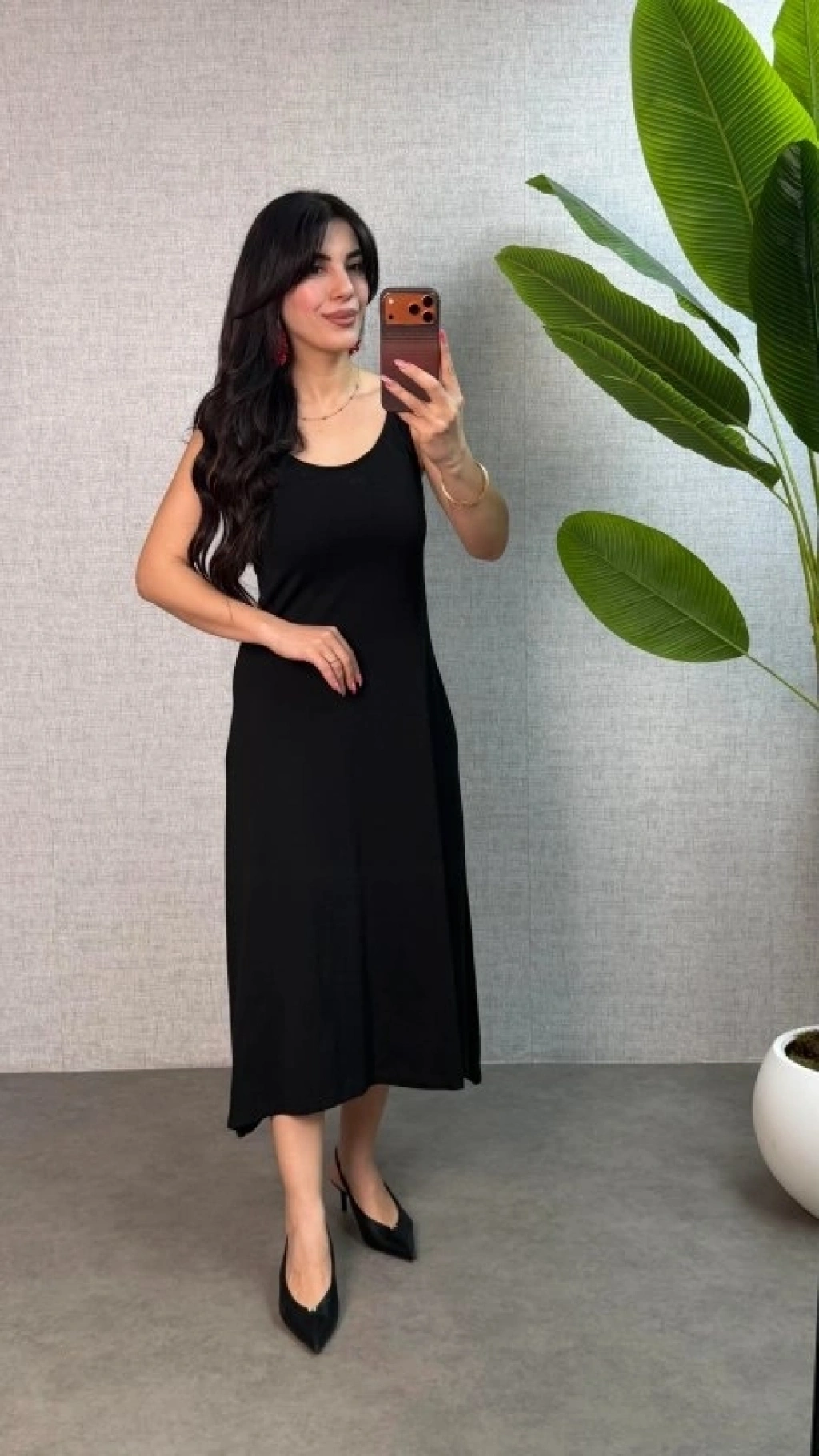 Bidebuvar Kadın Askılı Yuvarlak Yaka Süprem Kumaş Elbise