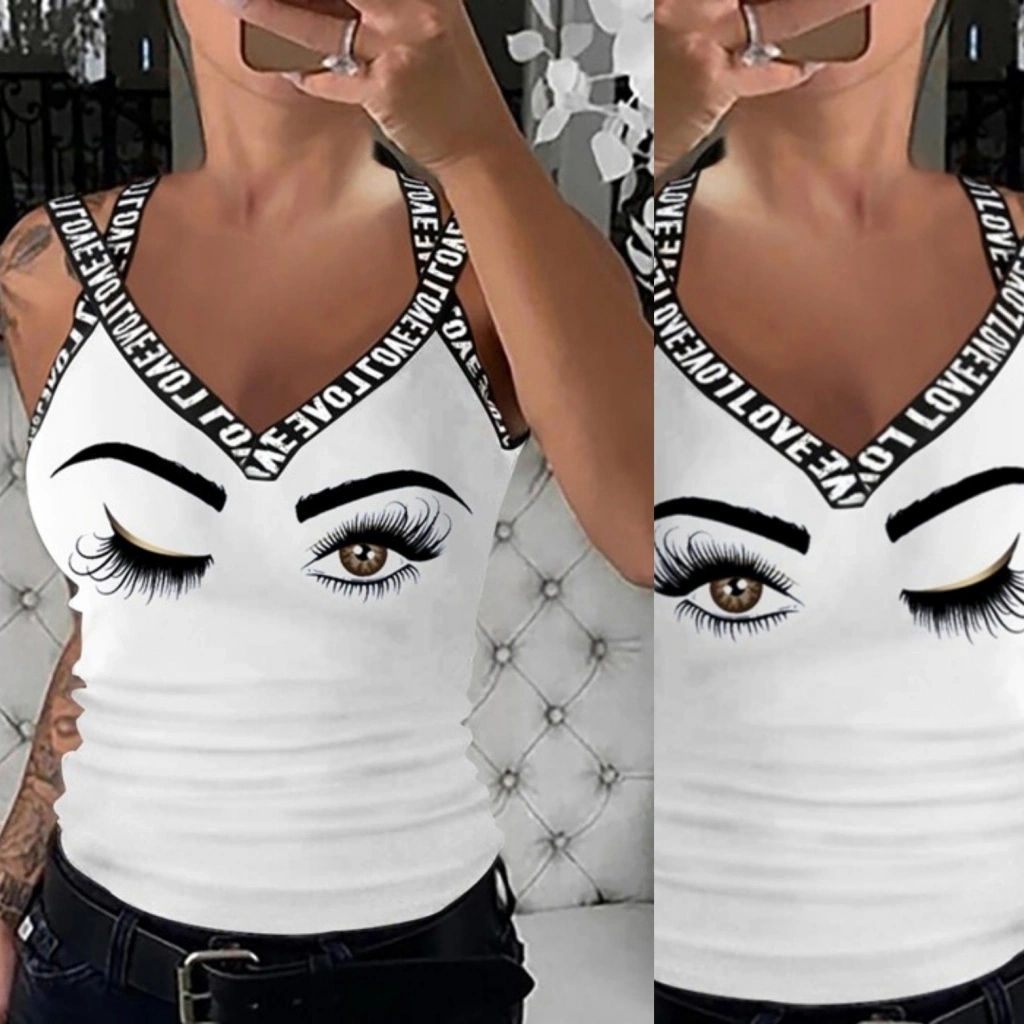 Kadın çapraz şeritli Göz Baskılı Viskon Bluz