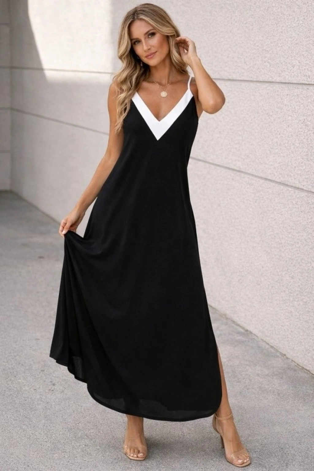 Bidebuvar Kadın Ip Askılı Keskin V Yakalı Uzun Viskon Elbise
