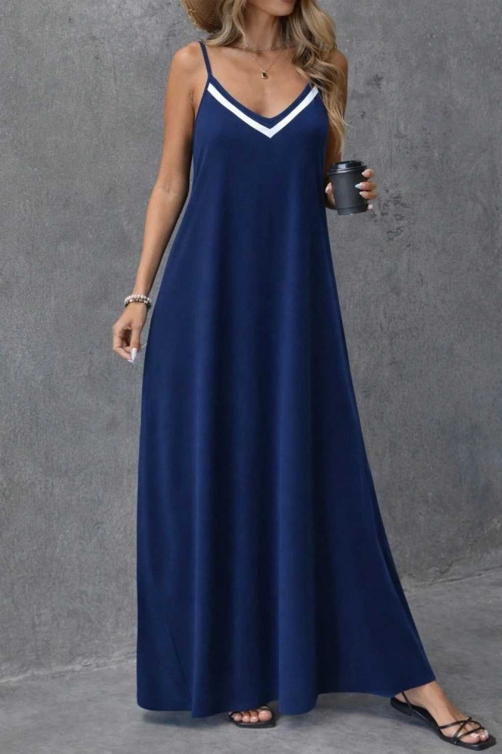 Bidebuvar Kadın Ip Askılı V şerit Yakalı Uzun Viskon Elbise