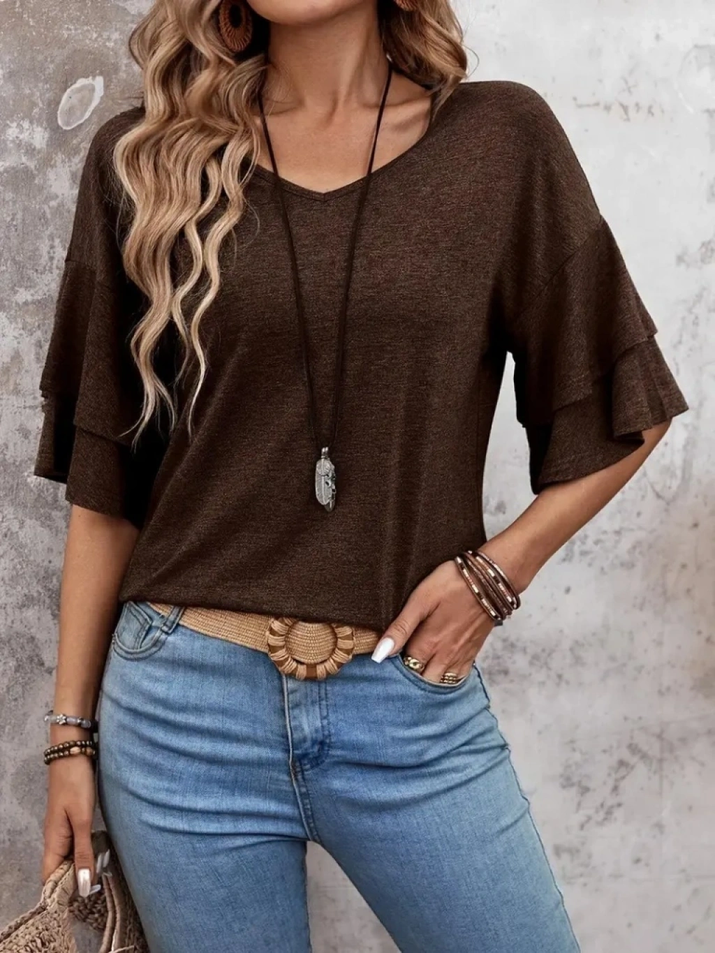 Kadın Kısa Kollu V Yakalı Viskon Bluz