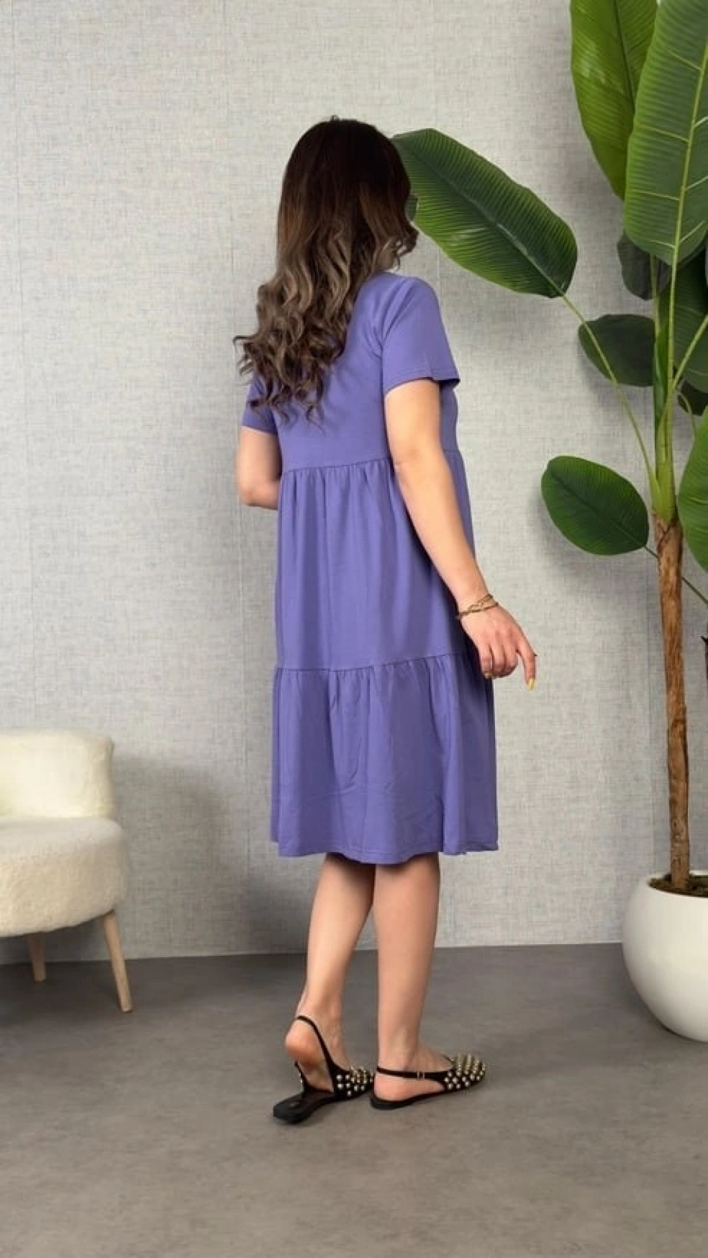 Bidebuvar Kadın Kısa Kollu V Yakalı Viskon Elbise