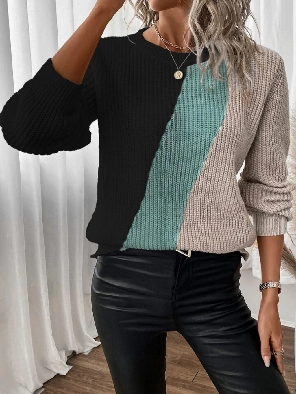 Kadın Uzun Kollu üç Renk Triko Bluz