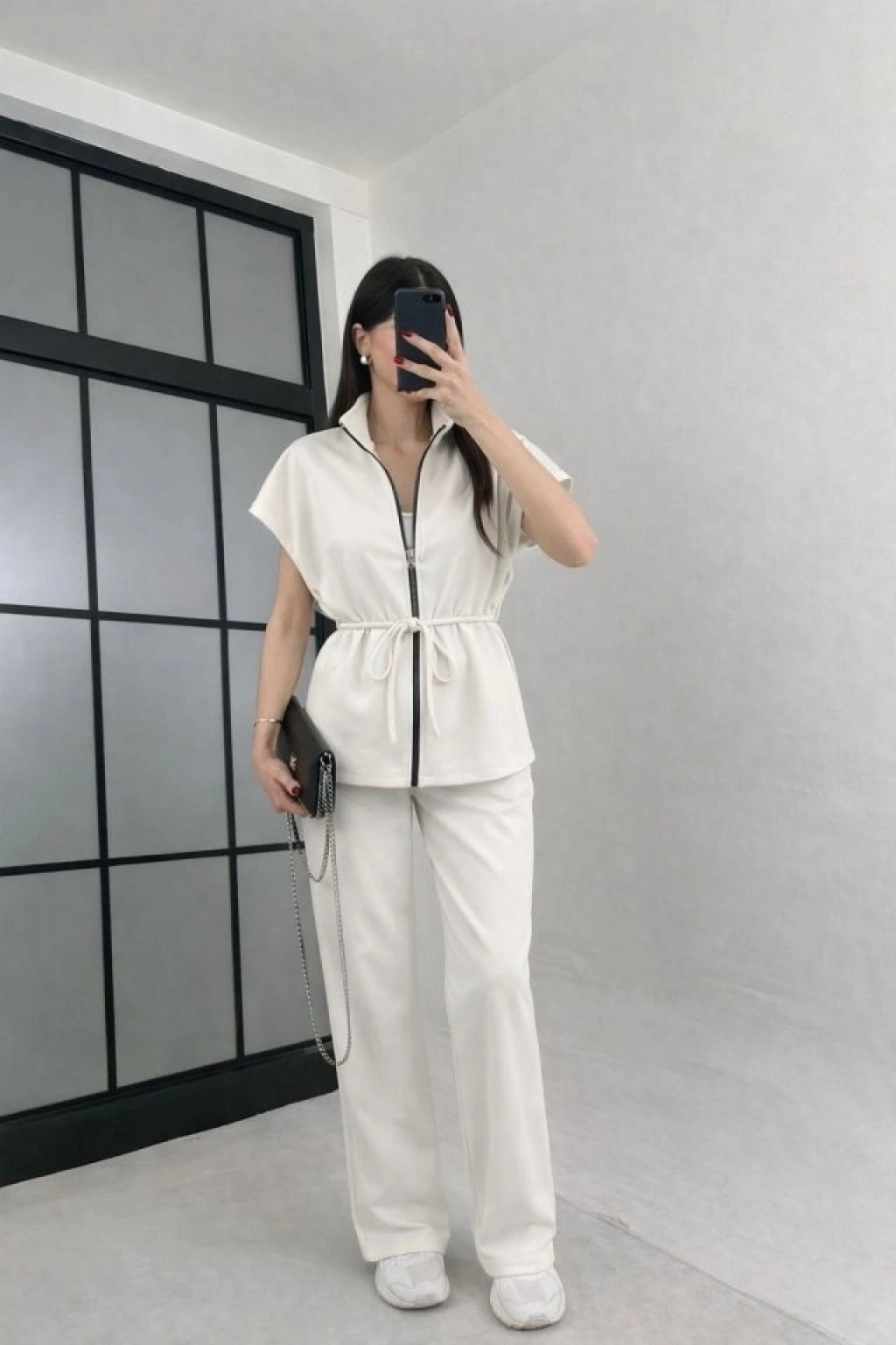 Kadın Yarasa Kol Fermuar Ve Lastikli Bağcık Detay Ceket Pantolon Ikili Takım