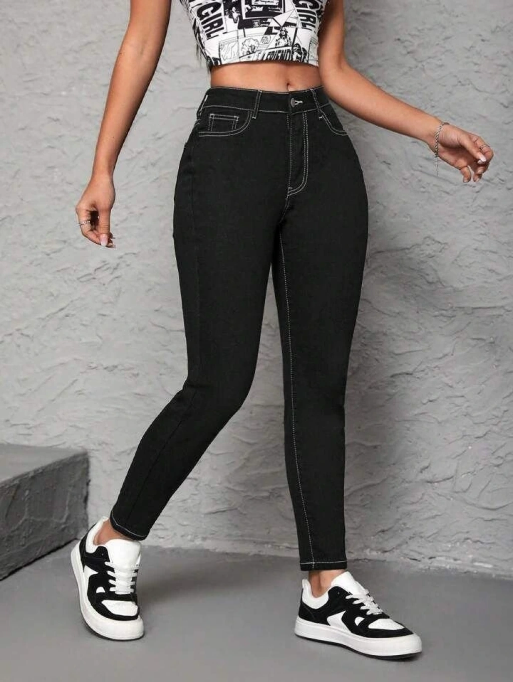 Kadın Yüksek Bel önden Düğmeli Dar Kesim Kot Pantolon