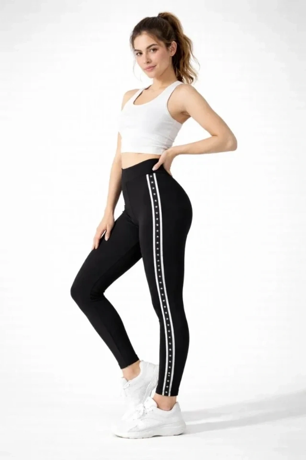 Likralı Yan Yıldız Şeritli Detaylı Tayt - Siyah