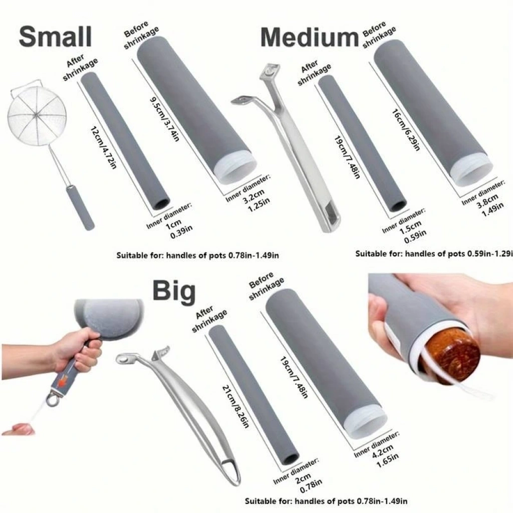 SİLİKON TENCERE SAPI KORUMASI“Sıcaklığa Karşı Güçlü Koruma: Güvenli ve Rahat Pişirme!”Silikon Tencere Sapı Koruması, otomatik çekme tasarımı sayesinde çeşitli tencere ve tavalar için mükemmel bir uyum sağlar. Ürün, silikon kapağı sapın üzerine yerleştirip, çekme halkasını nazikçe çekerek kullanılır; böylece düzensiz şekilli saplara bile mükemmel bir uyum ve kapsamlı koruma sağlar. -50°C ile 250°C arasındaki sıcaklıklara dayanacak şekilde test edilmiştir ve yüksek sıcaklıklarda bile dokunmaya serin kalır. Bu özellik, acı veren yanıklardan ve kazalardan kaçınmanıza yardımcı olur.Silikon sap kılıfı, bulaşık makinesinde yıkanabilir ve büyük esnekliği sayesinde kolayca çıkarılıp takılabilir. Pişirme gereçlerinde ya da çekmecede saklanması son derece basittir. Ayrıca, sadece dökme demir tencereler ve metal tavalar için değil, aynı zamanda bahçe araçları, bisiklet gidonları, kapı kolları ve raket kolları gibi çeşitli kullanım alanlarına da uygundur. Her yönlü koruma ve rahat kavrama sağlar, böylece her pişirme işleminizi daha güvenli ve konforlu hale getirir.