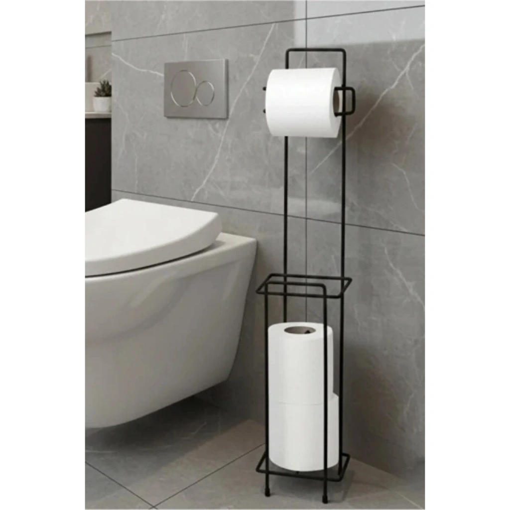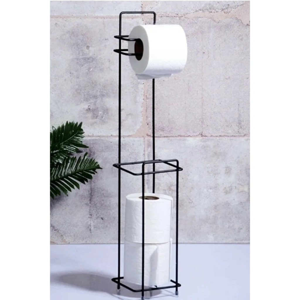 Bidebuvar Siyah Standlı Yedek Hazneli Tuvalet Kağıtlığı